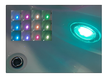 Complément indispensable à la chromothérapie, les jets transparents diffusent un éclairage couplé aux spots et aux commandes du spa.